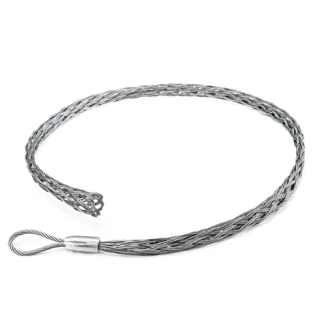 Профессиональный канатный чулок для безопасной протяжки кабелей и тросов диаметром 10-20 мм. Изготовлен из оцинкованной стальной проволоки двойного плетения, обеспечивающей надежный захват и самозатягивание при нагрузке.
