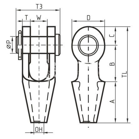 Открытый сокет с вилочным соединением OSS для троса 14-16 мм