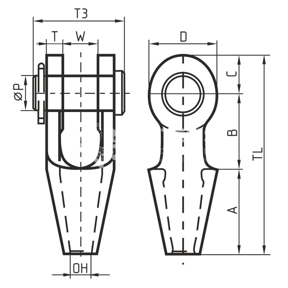 Открытый сокет с вилочным соединением OSS для троса 23-26 мм