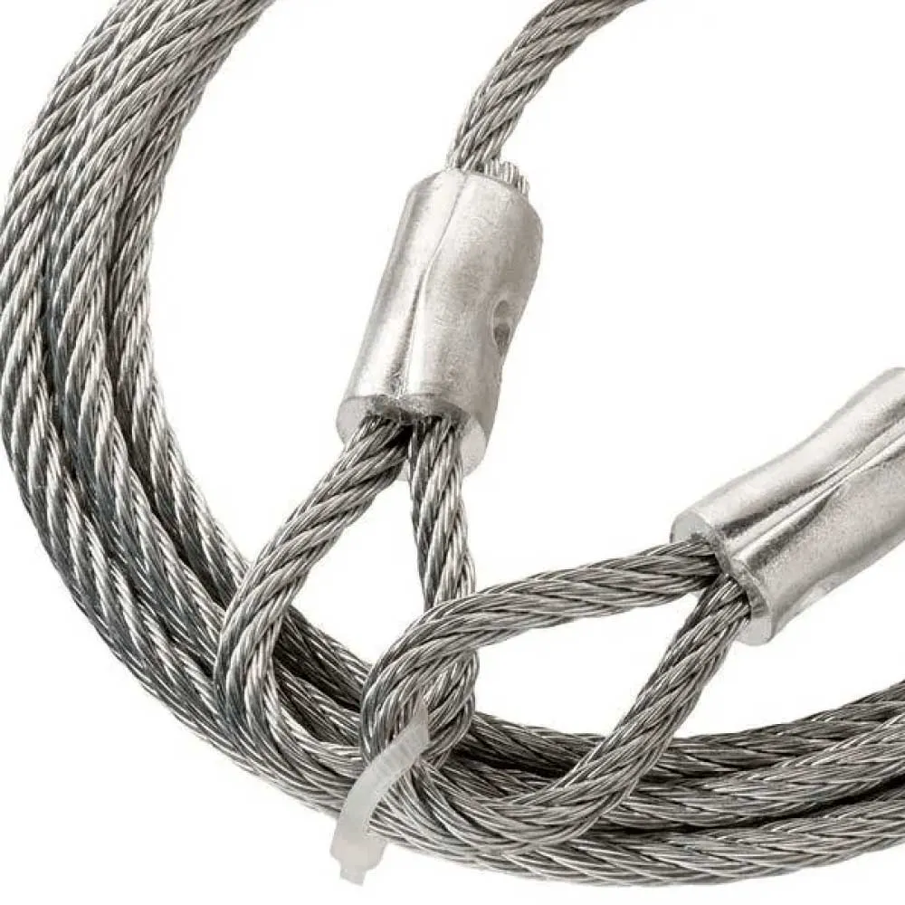 Универсальные канатные стропы производятся из канатов различных конструкций, наиболее общепризнанными из которых являются 6x19 и 6x36. Первая цифра обозначает количество прядей вокруг стержня, а вторая количество проволок в пряди.