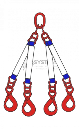 Такое изделие представляет собой четыре несущие ветви (по сути ленточные одноветвевые стропы 1СТ), которые объединены между собой специальным подвесным округлым кольцом. Петлевые концы каждой ветви обеспечены грузозахватными устройствами (концевыми деталями) — это могут быть скобы, захваты, а чаще всего грузовые крюки с защелкой или самозакрывающимся элементом. Положения по изготовлению и эксплуатации текстильных четырехветвевых строп предусмотрены предписаниями Госгортехнадзора в РД-24-СЗК-01-01, ТУ 5225-010-91978384-2011 и другими документами. Плоские ленты строп производятся из высококачественного полиэстера и способны выдержать высокую нагрузку с коэффициентом запаса прочности 7:1.