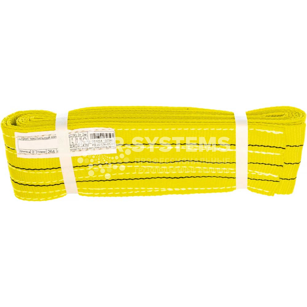 Текстильный петлевой строп СТП производства Р-Системс грузоподъемность 3 тонн, длина 1,5 м, ширина ленты 90 мм применяется для сцепления, захвата, поднятия и переноса предмета на автотранспорте, грузовых платформах, во время транспортировки по железнодорожному пути, палубного крепления на морских и речных судах, а также в бытовом хозяйстве.