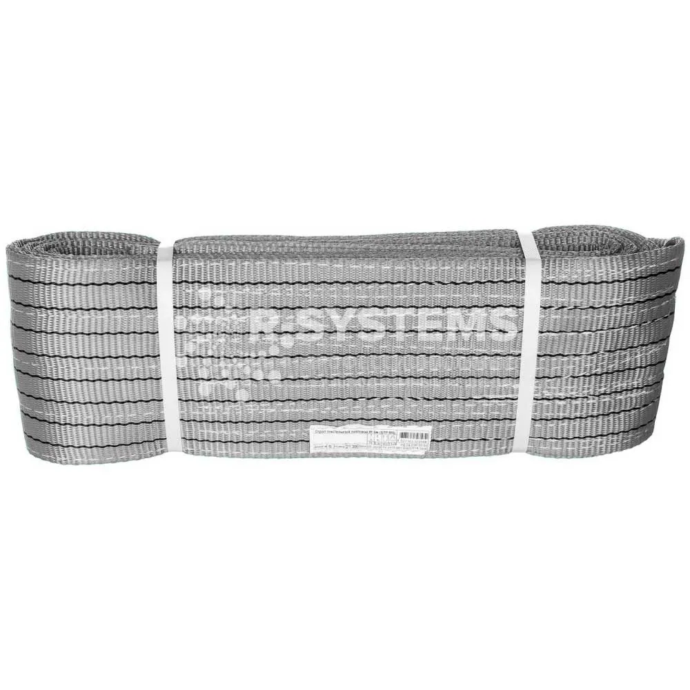 Текстильный петлевой строп СТП производства Р-Системс грузоподъемность 4 тонн, длина 6,5 м, ширина ленты 120 мм используется для крепления, захвата, подъема и перемещения предмета на автофургоне, грузовых платформах, во время доставки по железной дороге, палубного крепления на морских и речных судах, а также в бытовых условиях.