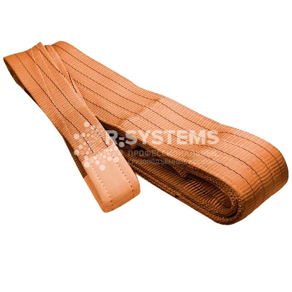 Текстильный петлевой строп СТП производства Р-Системс грузоподъемность 6 тонн, длина 7 м, ширина ленты 180 мм используется для крепления, захвата, поднятия и сдвига груза на автофургоне, грузовых платформах, во время перемещения по железнодорожному пути, палубного крепления на морских и речных судах, а также в бытовых условиях.