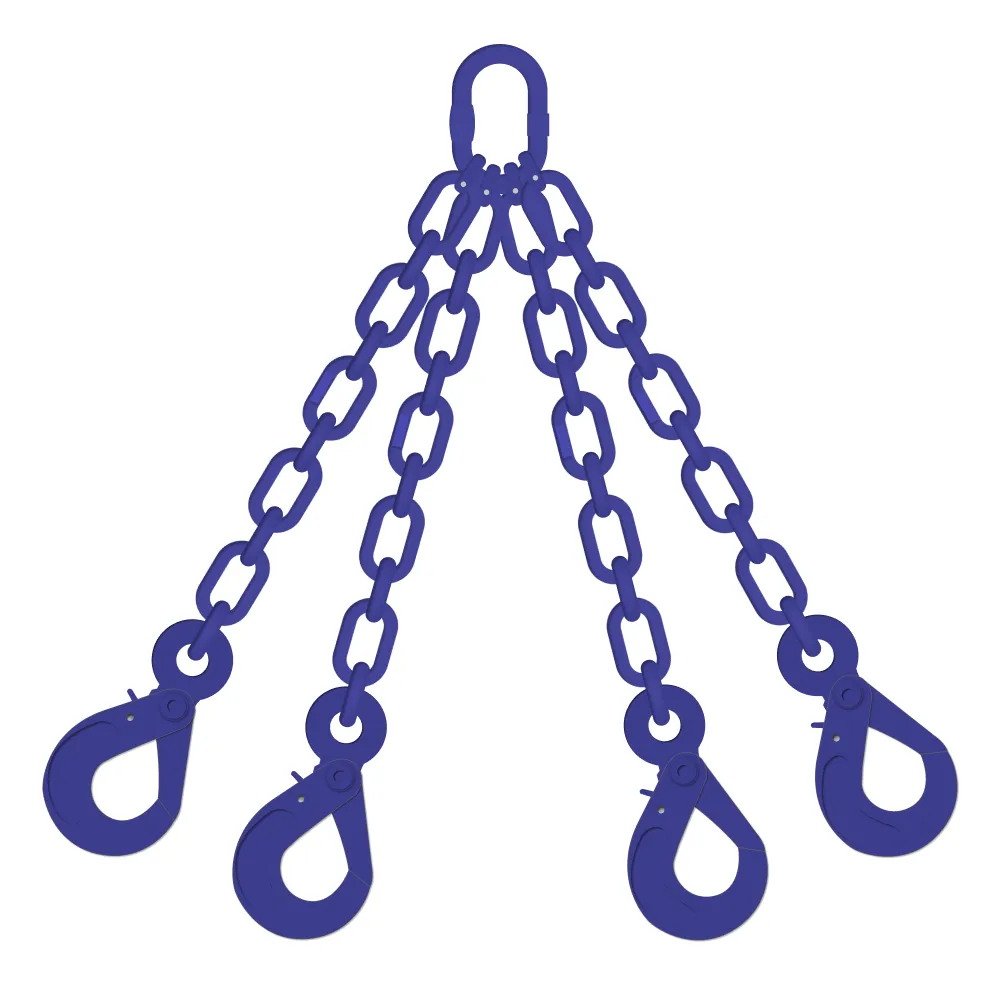 Четырехветвевой цепной строп является дополнительным элементом для подъема, удержания и перемещения грузов на железных дорогах, строительных, складских, производственных объектах, в морских портах. С помощью цепного стропа выполняются операции с объектами, у которых четыре точки крепления, смещенный центр тяжести или острые края. Например, это могут быть плиты, панели, блоки и прочие предметы, снабженные петлями или проушинами.