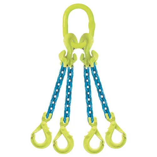 Строп цепной четырехветвевой 4СЦ производства Gunnebo г/п 21 т, длина 5 м, изготовленный из цепи диаметром 16 мм — это такелажное цепное приспособление, закрепление которого происходит за четыре опорные точки. Такой строп собирается из овального несущего звена с подзвенниками, к которому с помощью разборных соединительных звеньев крепятся круглозвенные цепные ветви, на свободных концах которых устанавливаются чалочные крюки с защелками.