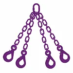 Строп цепной четырехветвевой 4СЦ производства Р-Системс грузоподъемность 8 т, длина 7,5 м, произведенный из цепи диаметром 10 мм — это такелажное цепное металлоизделие, закрепление которого производится за четыре опорные точки. Такой строп делается из овального несущего кольца с подзвенниками, к которому с помощью разборных соединительных звеньев крепятся круглозвенные цепные ветви, на свободных концах которых устанавливаются чалочные крюки с защелками.