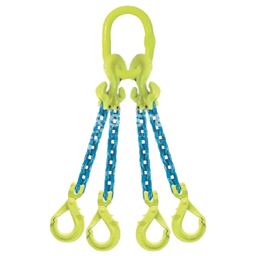 Строп цепной четырехветвевой 4СЦ производства Gunnebo грузоподъемность 8,4 т, длина 7,5 м, изготовленный из цепи диаметром 10 мм — это такелажное цепное изделие, закрепление которого производится за четыре опорные точки. Такой строп делается из овального несущего кольца с подзвенниками, к которому с помощью разборных соединительных звеньев крепятся круглозвенные цепные ветви, на свободных концах которых устанавливаются чалочные крюки с защелками.