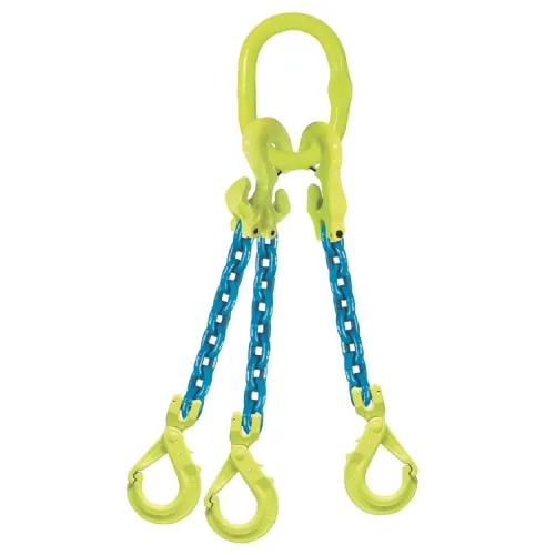 Строп цепной трехветвевой 3СЦ производства Gunnebo обладает грузоподъемностью 3,1 т и длиной 7,5 м. Изготовленный из цепи диаметром 6 мм, он является такелажным цепным металлоизделием, имеющим три точки крепления. Строп крепится к крюку грузоподъемного механизма и состоит из верхнего несущего звена, соединительных звеньев, трех прямых отрезков круглозвенной цепи и чалочных крюков на концах для прикрепления к грузу.