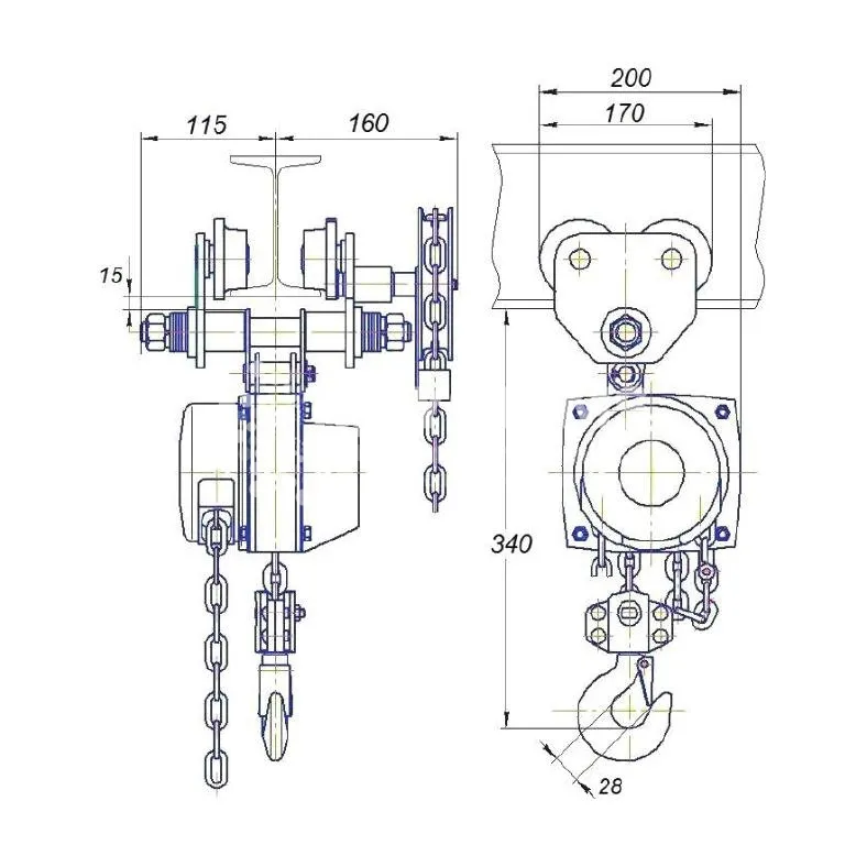 Таль электрическая цепная передвижная TOR HHBD-T г/п 1 т, L=12 м — фото превью