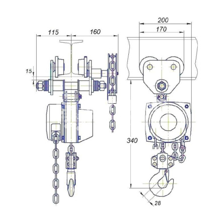 Таль ручная шестеренная передвижная СВПК ТРШБМ г/п 5 т, L=12 м — фото превью