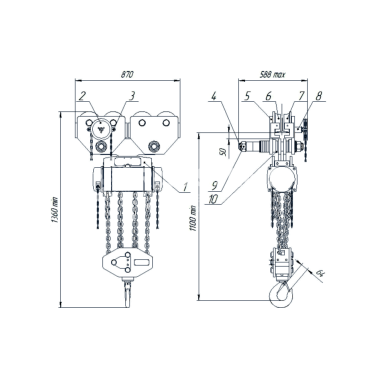 Таль ручная шестеренная стационарная СВПК ТРШСп г/п 1 т, L=9 м