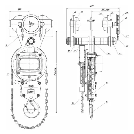Таль ручная шестеренная передвижная СВПК ТРШБМ г/п 5 т, L=12 м - высокопроизводительное подъемное оборудование с максимальной высотой подъема 12 метров. Грузоподъемность 5 тонн. Механизм передвижения с тяговыми цепями обеспечивает удобное позиционирование груза. Монтируется на двутавровых балках.