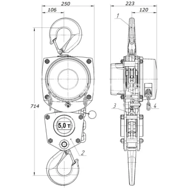 Таль ручная шестеренная стационарная СВПК ТРШСК г/п 3,2 т, L=3 м — фото превью